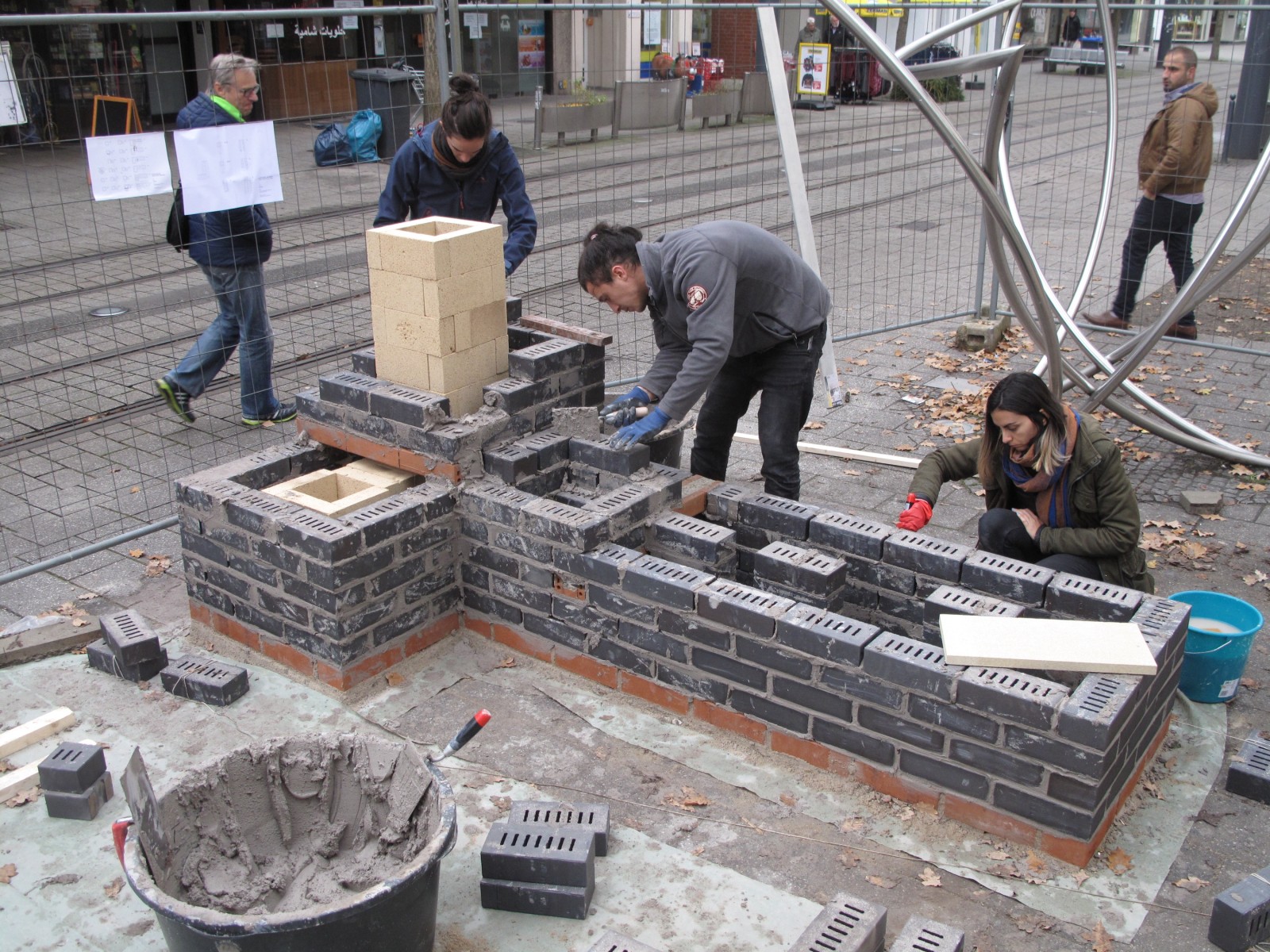Cette installation, composée de deux poêles à bois et d’un poêle de masse, réintroduit le feu dans l’espace public. Il s’agit de la première installation de ce type construite dans un espace extérieur partagé, permettant aux personnes de passer plus de temps dehors durant les mois d’hiver, tout en restant confortablement au chaud. Les habitant·e·s de Witten ont été invité·e·s à apprendre, expérimenter et construire ensemble ce poêle dans un cadre public. Un tutoriel vidéo – Comment construire un poêle de masse rocket pour l’espace public – constitue un volet essentiel du projet, afin d’assurer un partage libre et ouvert de ce savoir innovant.