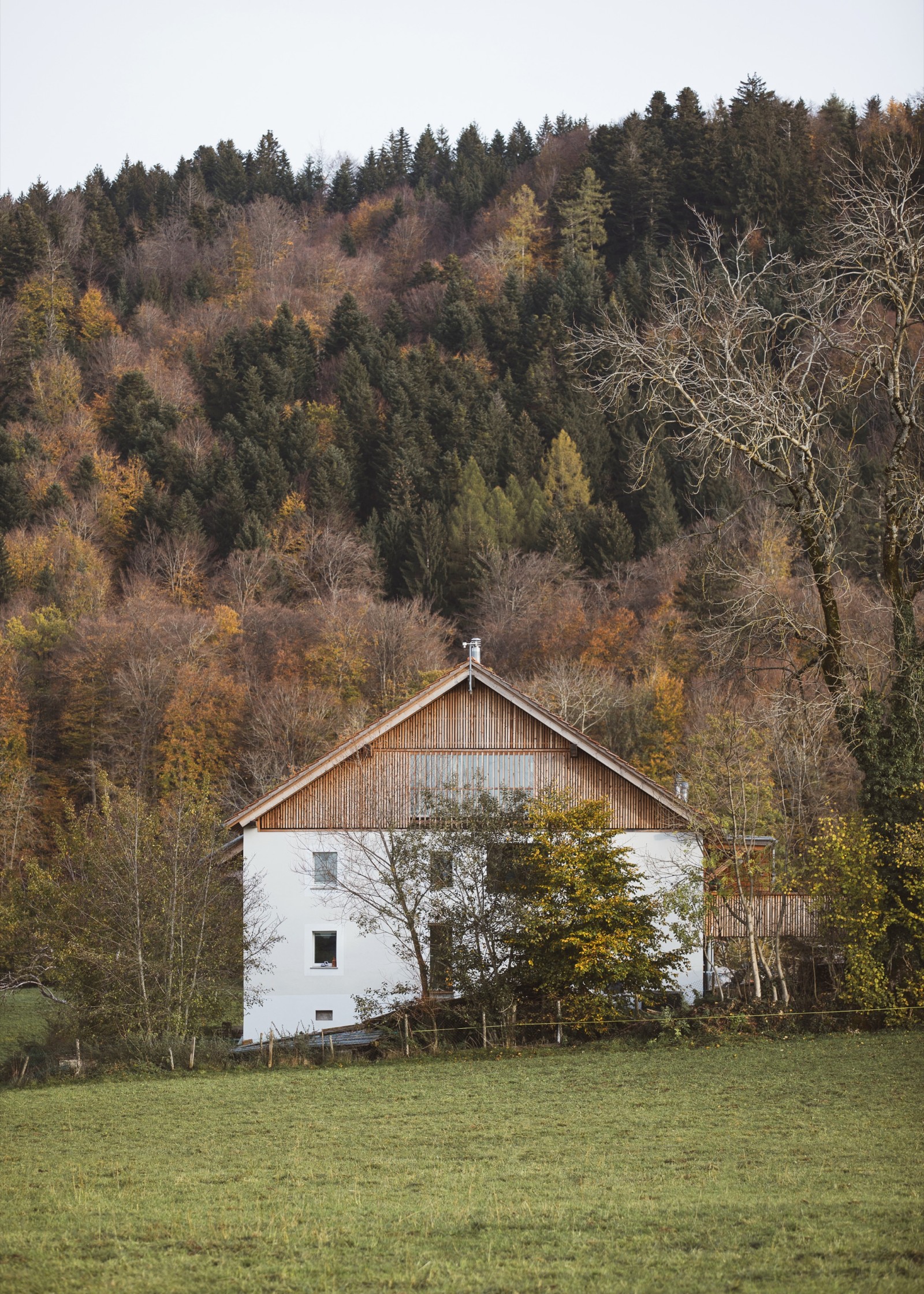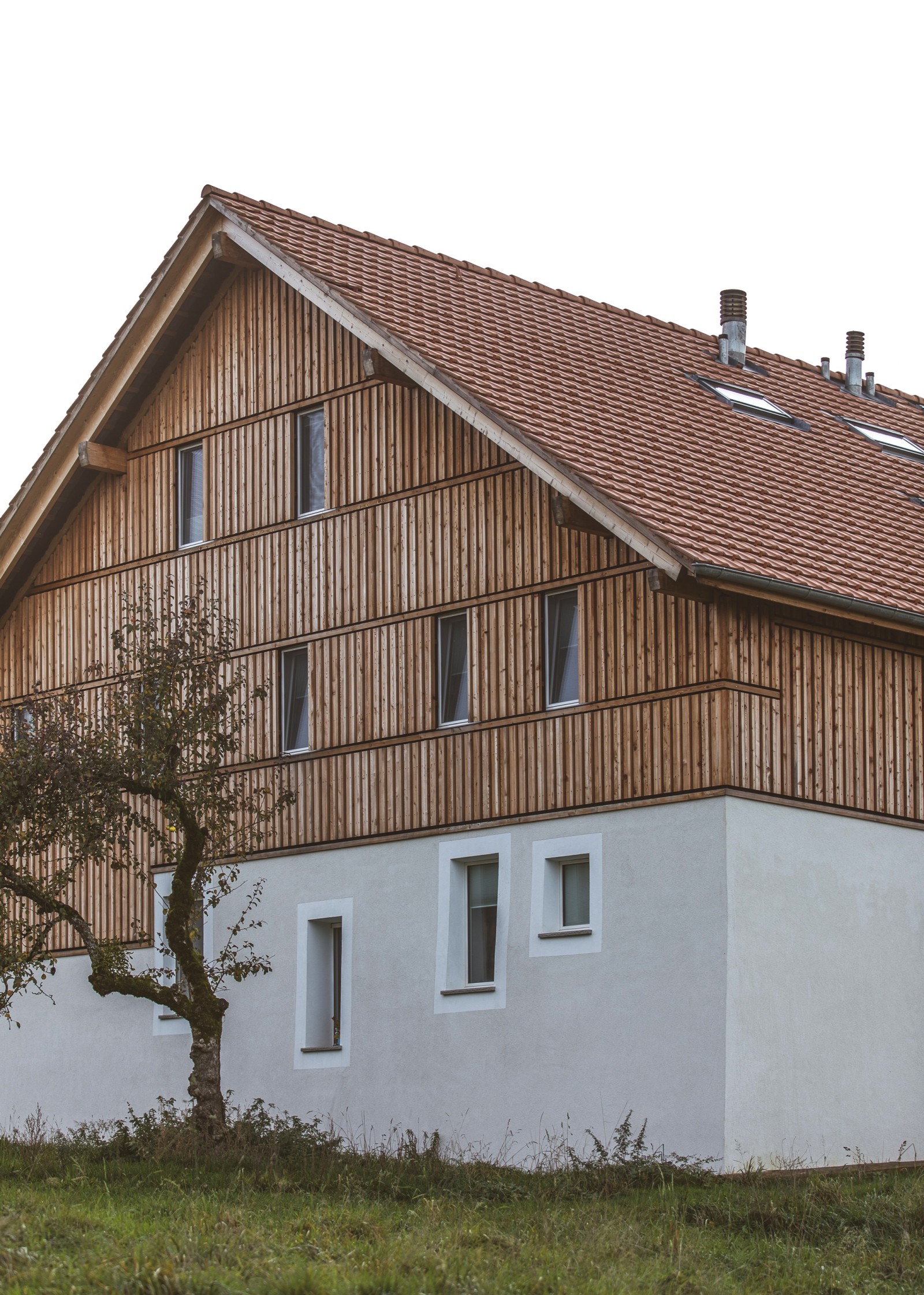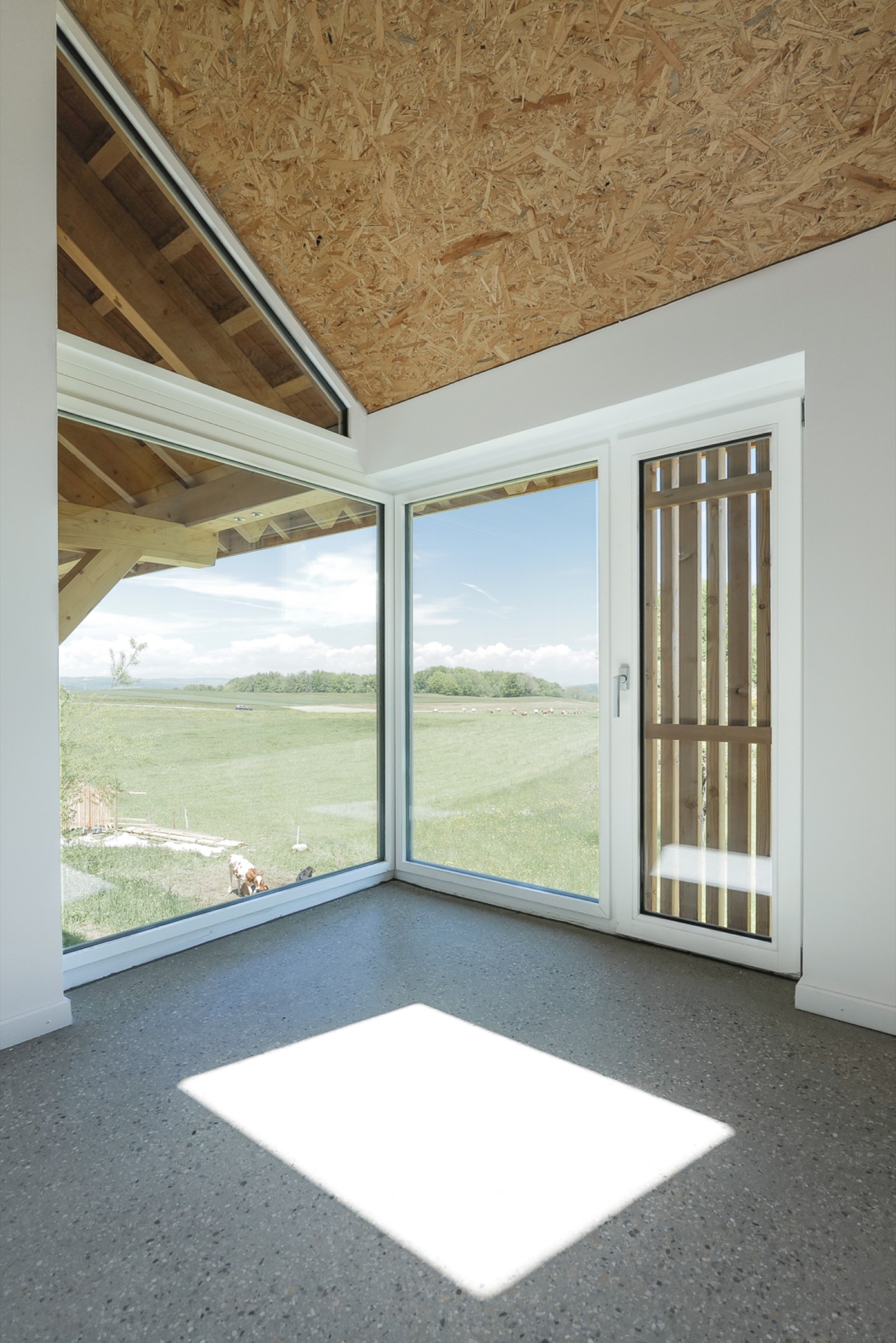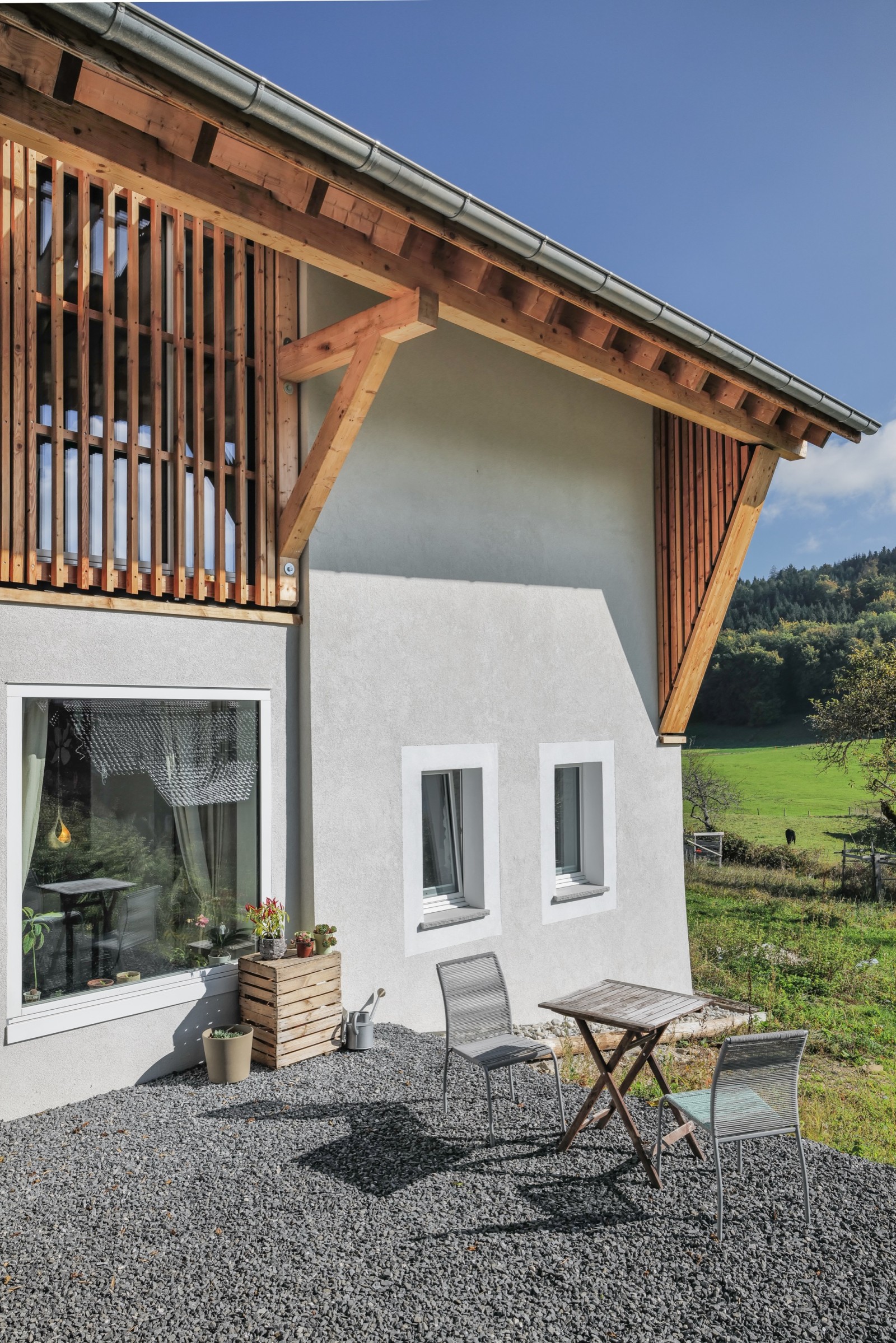 À Attalens, la ferme classée du Rombuet a été transformée en un lieu de vie résolument innovant alliant habitat collectif et sphère privée. Porté par la coopérative d'habitants « Les Coloriés », ce projet a été pensé comme une grande maison et propose six logements privés aux surfaces contenues, articulés autour d'espaces communs généreux : cuisine équipée, garde-manger, salle à manger, terrasse, atelier, bureau, salon, ainsi que des chambres mutualisées. L’intervention valorise l’existant : maçonnerie d’origine conservée et isolée, matériaux bruts, finitions sobres et nouvelle structure en bois fidèle à l’ancienne charpente. Le bardage ajouré en mélèze permet d'intégrer de larges ouvertures tout en préservant le caractère de la ferme. L’approche constructive est sobre, locale et durable : toilettes à lombricompost, citerne de récupération des eaux de pluie, biotope, potager et verger. Ce projet nous invite à repenser notre manière d'habiter : comment vivre à la campagne avec un impact réduit, en mutualisant les ressources tout en préservant l'intimité ?